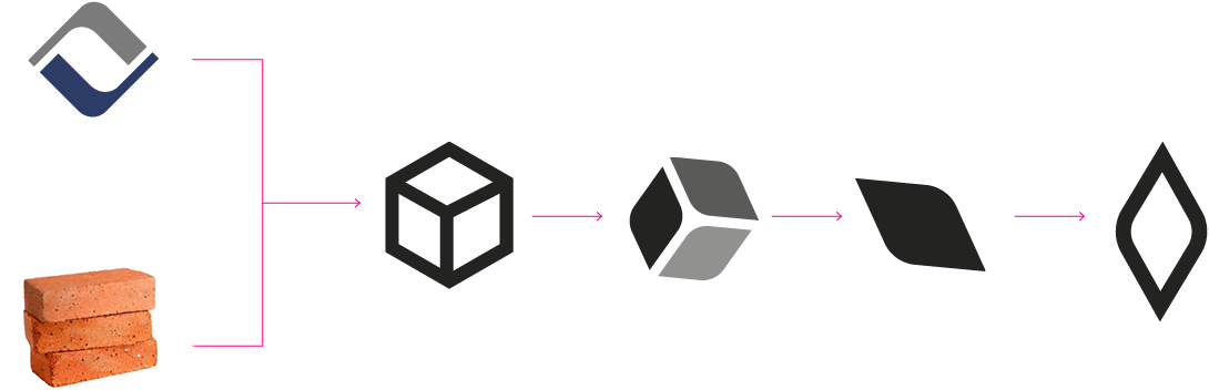 From the beginning we aimed at finding a symbol, an evocative metaphor, which could blend in with the previous logo and with the tradition and experience it represents. We looked for inspiration everywhere, we went out (even of the box), we photographed and scribbled until the enlightenment came. Finally, we found something that could represent the positive meanings we were looking for: the creation of something new, the construction from the foundation, a (new) beginning. And it was something we have right before our eyes every day: the exposed bricks that support and decorate our offices.