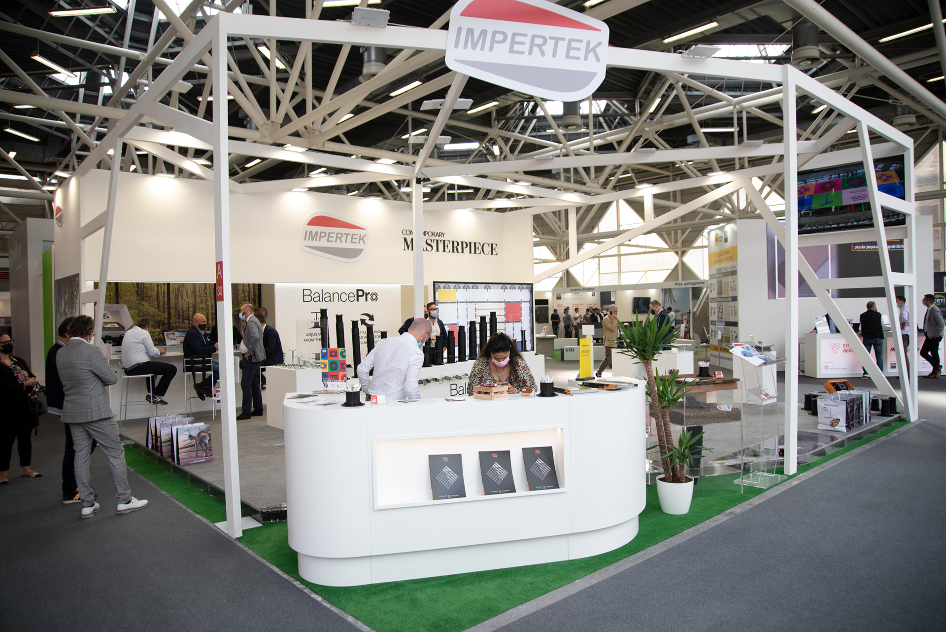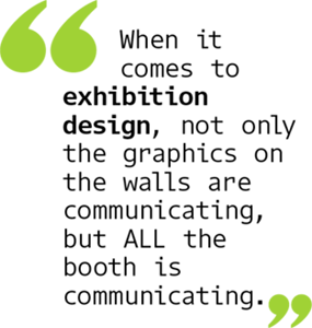 Graphic design, or rather visual communication, comes into play in two moments: at the beginning and at the end of the process. At the beginning, in the definition of the exhibition concept which defines -broadly speaking- how important will be graphics in the stand: are graphics going to play a main role (to create for example an immersive experience) or are they going to be minimal? Maybe are there some essential graphics that must be embedded in the design?