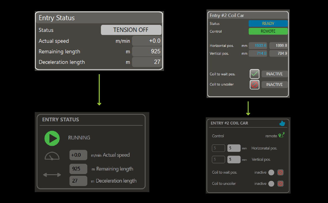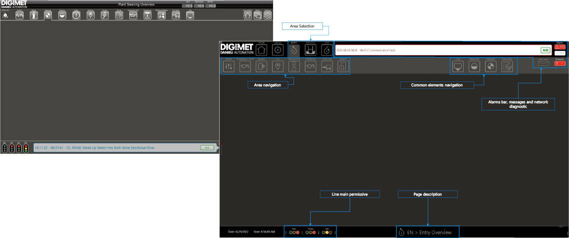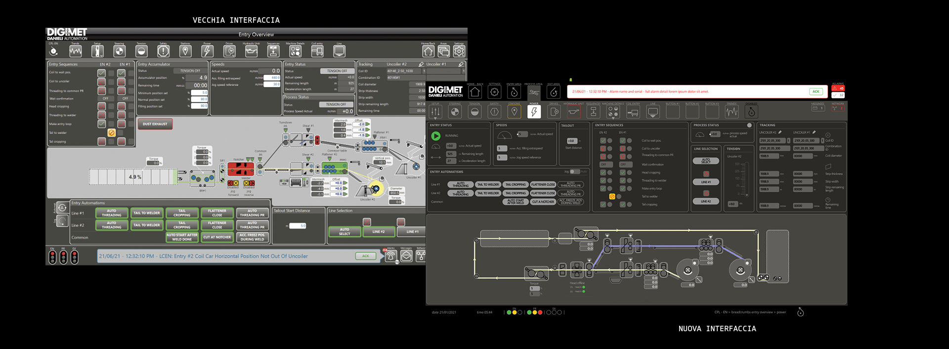 In fact, Danieli's application had some critical issues from the wireframe point of view so the first objective was to define a better distribution of the elements of the top bar and bottom bar, grouping semantically similar elements, and assigning a more visible position to the relevant objects, in order to reconstruct a spatial hierarchy more responsive to what are the hierarchies of meaning among the elements.