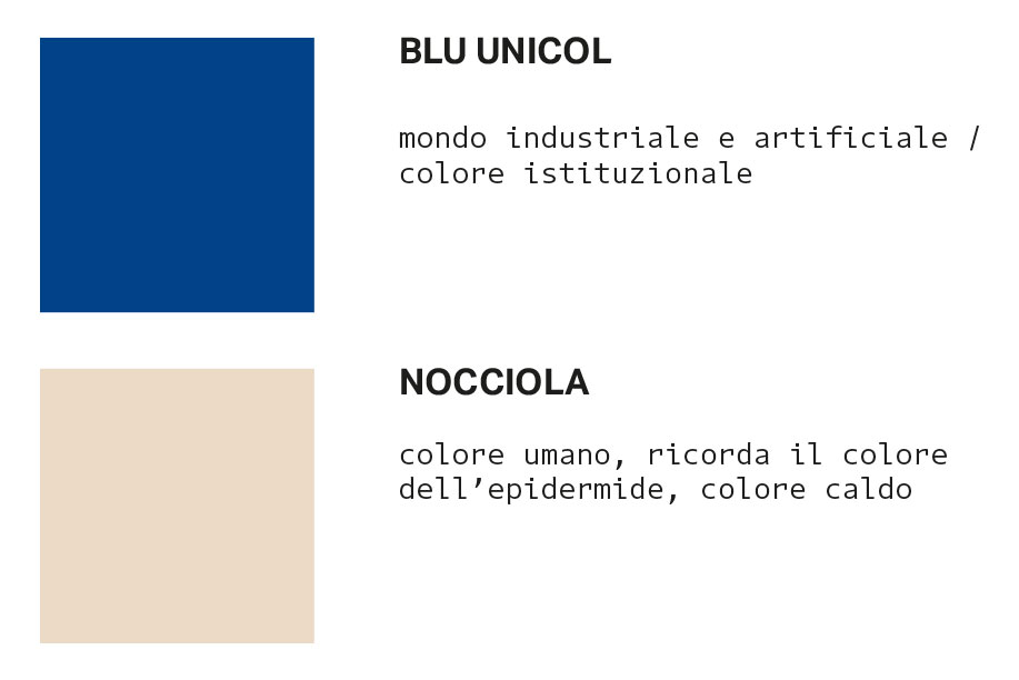 Visually, the colors chosen integrate the institutional blue-which conveys a certain rigor and technical reliability-with a warmer, "human" color, a hue reminiscent of wood notes or skin tones. The same duality between rigor and softness is found in the use of fonts: one harder and rigorous, the other softer and more rounded.