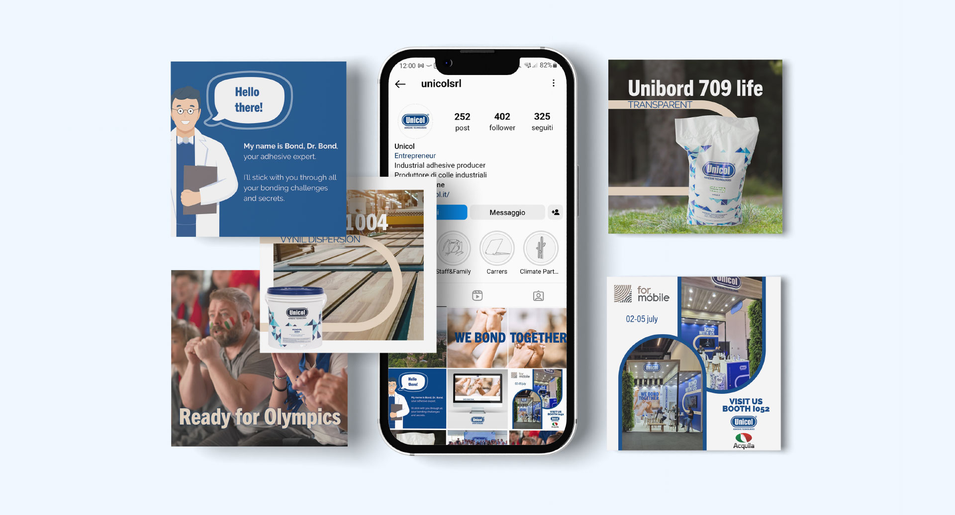 These bonds span 360 degrees around Unicol's work: they are chemical bonds, social bonds, bonds with customers and partners, with the team, with the environment, etc. Unicol therefore is not just a product, but relationships/unions/bonds between people who, united in social and environmental connections and values, walk toward a future together.