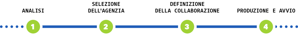 • Analisi interna – mettere a fuoco obiettivi, raccogliere dati del mercato, definire chi prende le decisioni • Ricerca e selezione dell’agenzia – esplorare le possibilità, contattare agenzie, organizzare incontri o pitch, confrontare proposte • Definizione della collaborazione – offerte, contratti, scambio di idee, visione delle prime proposte creative, richieste di modifiche, approvazione finale • Produzione e avvio – creazione dei materiali, pianificazione operativa, go live delle prime attività