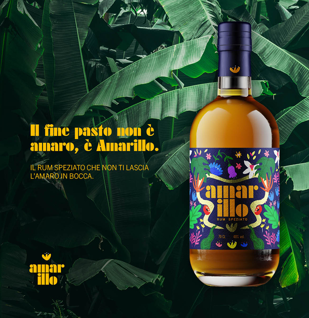 Con Amarillo abbiamo voluto giocare, senza mai perdere di vista la strategia. Il nome nasce dalla fusione tra l’idea dell’amaro (ma senza retrogusto amaro) e un suono latino, solare, che richiama calore, festa e spensieratezza. Naming, design e storytelling si intrecciano per posizionare il prodotto in una nicchia ancora tutta da esplorare: quella del rum come alternativa giovane e sfiziosa ai classici digestivi.