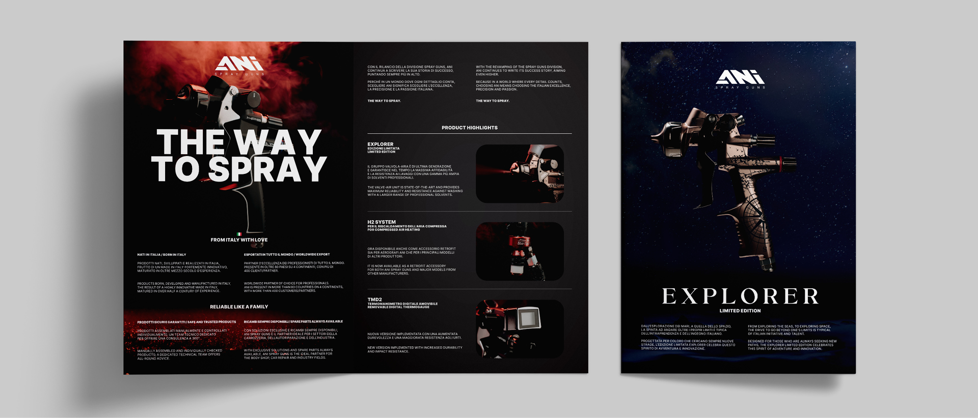 Il cuore della nuova comunicazione è racchiuso in un claim tanto semplice quanto potente: THE WAY TO SPRAY. Un’affermazione, più che uno slogan, che eleva l’utilizzo degli spray gun A.N.I. a scelta di stile, approccio e standard qualitativo. La narrazione combina tradizione e innovazione, valorizzando l’heritage italiano senza scivolare nella nostalgia, ma proiettandolo verso un futuro tecnologico, audace e di design.