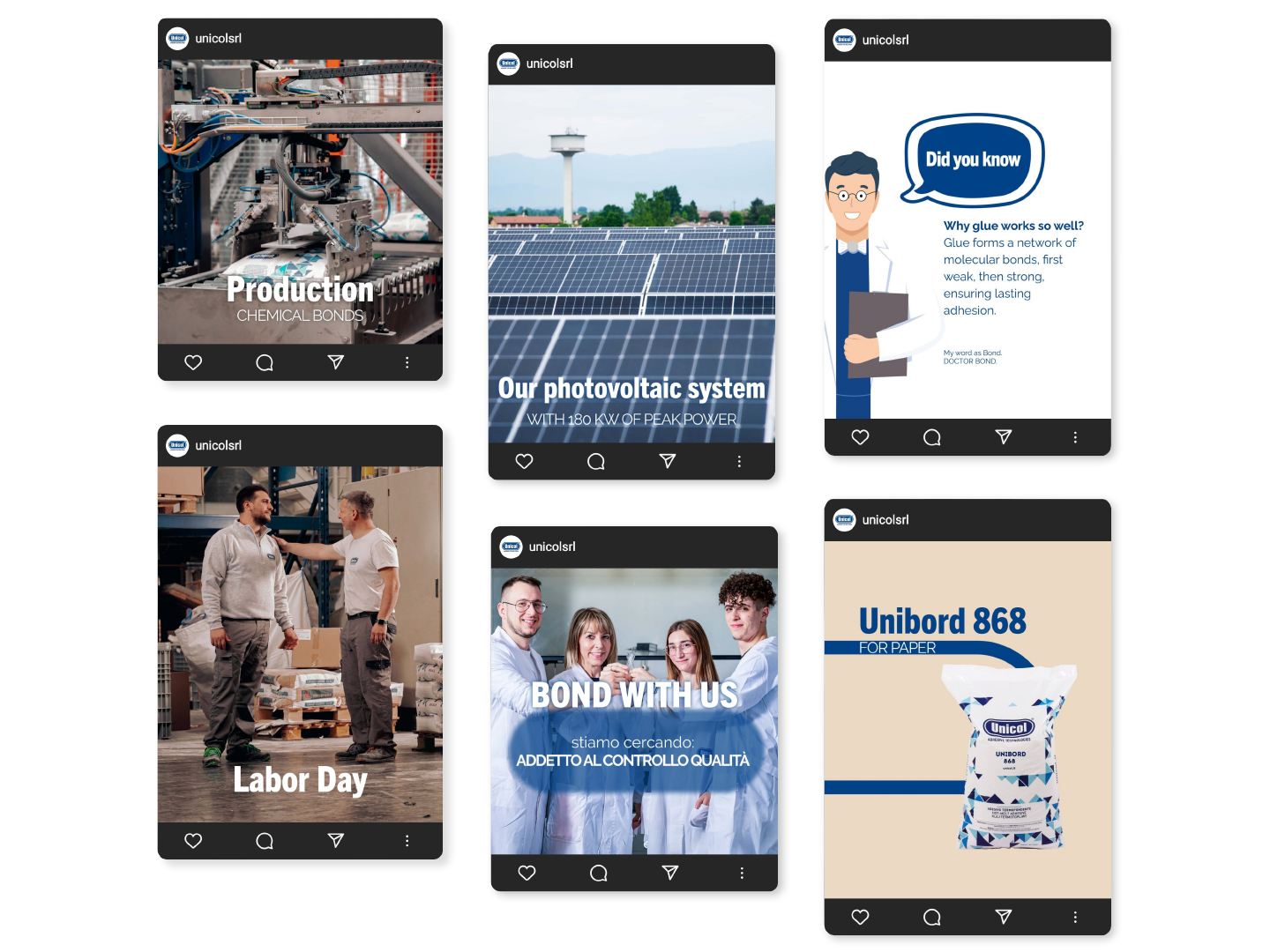 Ogni elemento è pensato per rafforzare la brand awareness e rendere la comunicazione social di Unicol più coesa, comprensibile e memorabile.